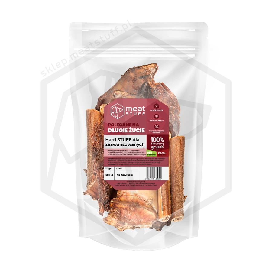 Nasze produkty są mono- składnikowe, więc nie musicie wnikliwie czytać ich etykiet. Nie są ulepszane chemicznie ani konserwowane co powoduje, że są bogate w cenne składniki, a psy to wyczuwają i chętniej wybierają nasze gryzaki.