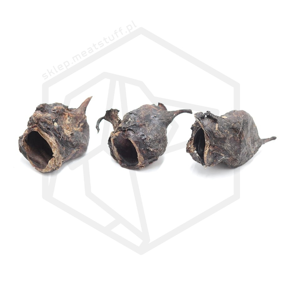 Krtań jelenia to mięsno-chrzestny gryzak o ciemnym zabarwieniu. Jak wszystkie mięsa i podroby z dziczyzny, nadaje się dla psów z alergiami. Zajmie psa na dłużej, ponieważ wymaga ogryzienia mięsa, a następnie rozgryzienia chrzęstnej krtani.