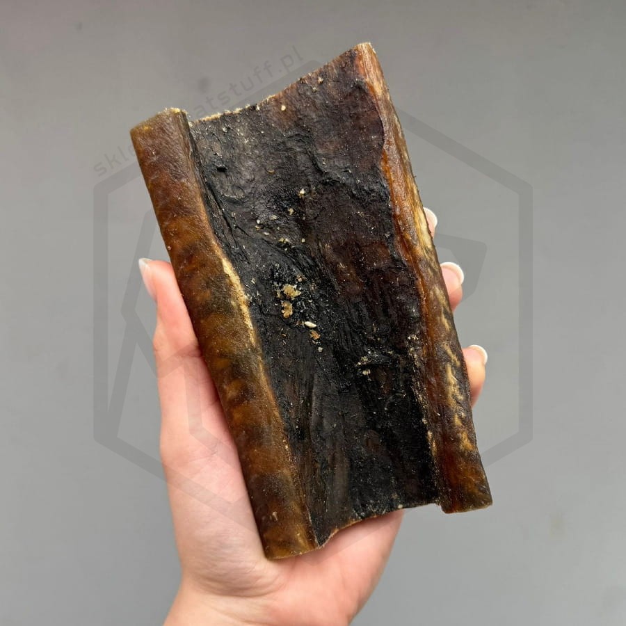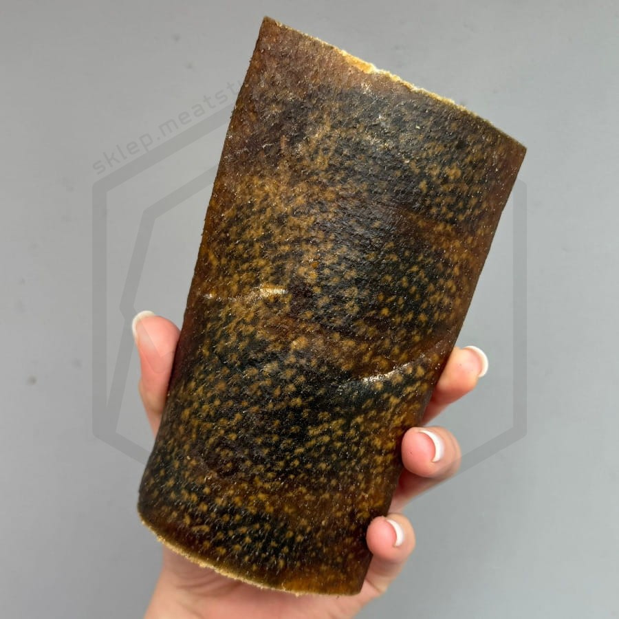 Skóra dzika 15 cm BARDZO GRUBY KAWAŁEK - wyzwanie dla mocnych szczęk 1 szt. to naturalny, twardy, tłusty i aromatyczny gryzak, który zajmie twojego psa na dłuższą chwilę. Zapach tego przysmaku zachęci nawet najbardziej wybrednego psa, a wyjątkowa twardość sprawi, że będzie doskonałym sposobem na rozładowanie emocji, zabicie nudy lub zaspokojenia silnej potrzeby gryzienia.