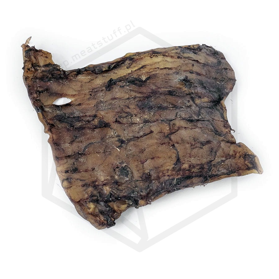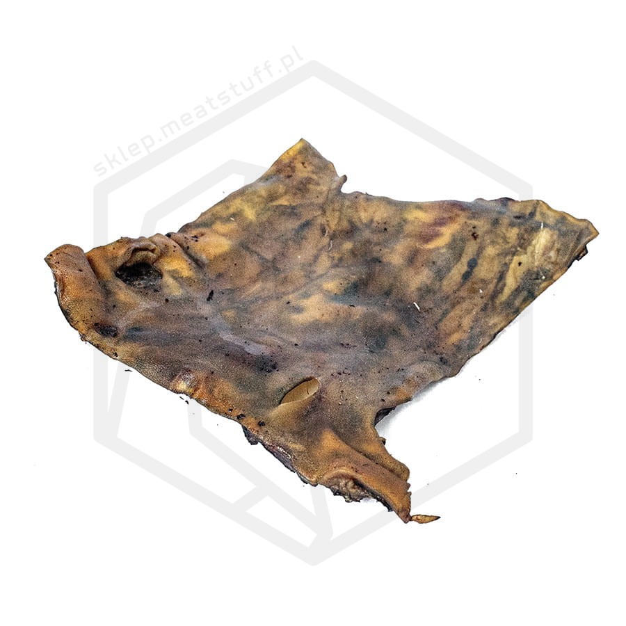 Skóra wołowa płaska to wyjątkowo smaczny gryzak o niskiej zawartości tłuszczu. Są to duże i nieregularne płaty o wymiarach ok. 30x25cm. Skóra jest średniej grubości, wyjątkowo twarda i chrupiąca.