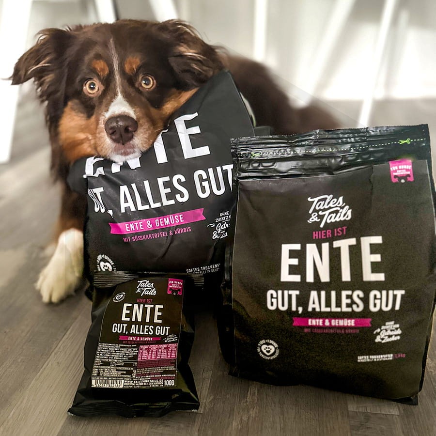 Półmiękka sucha karma z kaczki to pyszna kaczka w połączeniu z warzywami i owocami. To wszystko, czego potrzebujesz w misce Twojego psa. Całkowicie rezygnujemy z dodatku zbóż i cukru czy innych wypełniaczy. Mięso z kaczki jest bardzo aromatyczne i może być szczególnie atrakcyjne dla wybrednych psów.