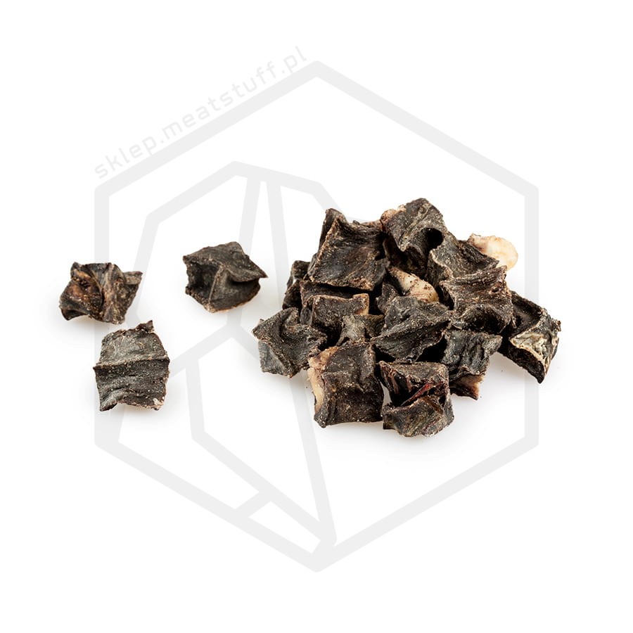 Mięso poddawane jest obróbce mechanicznej, czyli nadaniu odpowiedniego kształtu, a następnie suszone w niskiej temperaturze dla zachowania wartości odżywczych. Ostatnim etapem jest sterylizacja termiczna, która zapewnia bezpieczeństwo produkowanej żywności dla psów.