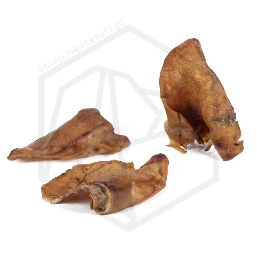 Ucho wieprzowe to najprawdopodobniej najbardziej znany i lubiany naturalny gryzak dla psów. Jest to najmniej przetworzony gryzak ze wszystkich uszu dostępnych w naszej ofercie dzięki temu, że nie jest poddawany odwłaszaniu, jedynie myciu i suszeniu. Jak większość gryzaków z wieprzowiny jest bardzo lubiany przez psy i zapewni dużo przyjemności z żucia. Uszy wieprzowe są lekkostrawne dlatego polecane są dla psów z wrażliwym układem pokarmowym oraz szczeniaków. Chrząstka uszu zawiera kolagen, który pozytywnie wpływa na stawy, sierść oraz pazury.